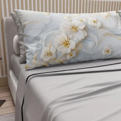 PETTI Artigiani Italiani Cotton Sheets with Pillowcases in Digital Print, Double Maxi, Complete Top and Bottom Sheet Corners, Floral 06 1 Light Grey, 100% Made Italy