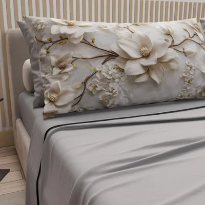 PETTI Artigiani Italiani Cotton Sheets with Pillowcases in Digital Print, Double Sheet, 34 Light Grey Floral Bedding Set, 100% Made Italy