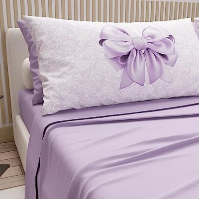 PETTI Artigiani Italiani Cotton Sheets with Pillowcases in Digital Print, French Quarter Size, Complete Top and Bottom Sheet Corners, Lilac, 100% Made Italy