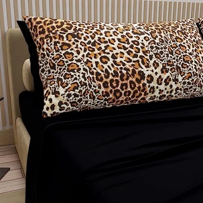 PETTI Artigiani Italiani Cotton Sheets with Pillowcases in Digital Print, French Queen, Complete Top and Bottom Sheet Corners, Black, 100% Made Italy