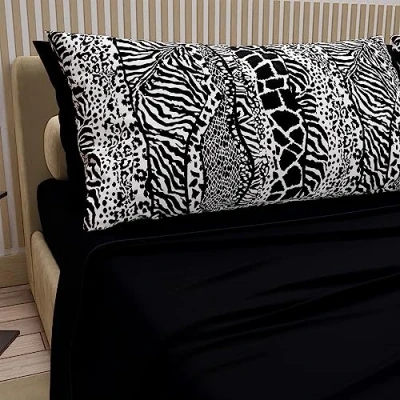 PETTI Artigiani Italiani Cotton Sheets with Pillowcases in Digital Print, Single Bed Sheet, Set, Black, 100% Made Italy