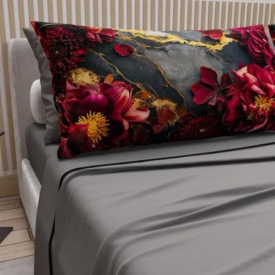 PETTI Artigiani Italiani Cotton Sheets with Pillowcases in Digital Print, Single Bed Sheet, Set, Floral 16 Dark Grey, 100% Made Italy