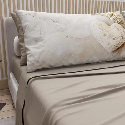 ️ PETTI Artigiani Italiani Polycotton Bedding Set Includes: Top Sheet, Fitted Sheet, Pillowcases in Plain Colour and Plus, to add a touch of style and uniqueness, digital print pillowcases are added in 100% hypoallergenic microfibre. ️ Often, when buying new sheets, you forget about the pieces. Sometimes you leave out the fitted sheet, others don't remember to buy the matching pillow cases. ️ At PETTI Artigiani Italiani, as always, we are ready to help you choose the most suitable bed set for your needs, in a single article we contain everything you need to sleep well, without thoughts and above all with style. Materials used: top sheets, fitted sheets and pillowcases in solid colour polycotton; pillowcases in digital print 100% hypoallergenic microfibre. Production: everything as always, 100% Made in Italy. The single bed set includes: 1 top sheet 150 x 290 cm; 1 bottom sheet 90 x 200 cm; 1 plain pillowcase 50 x 80 cm; 1 pillowcase in digital print 50 x 80 cm.