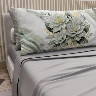 PETTI Artigiani Italiani Cotton Sheets with Pillowcases in Digital Print, Single Sheet, Bedding Set Grey Sage Flower Design, 100% Made Italy