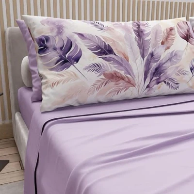 PETTI Artigiani Italiani Cotton Sheets with Pillowcases in Digital Print, Single Sheet, Lilac Palm Design Bed Set, 100% Made Italy