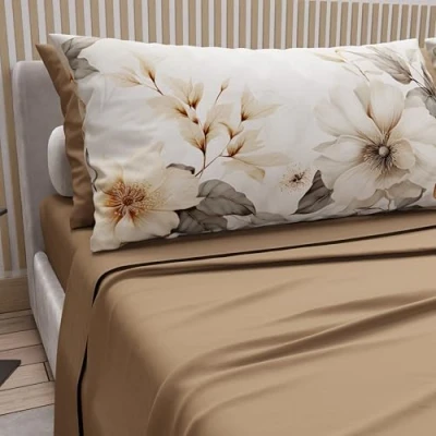 PETTI Artigiani Italiani Double Bed Sheets Cotton with Pillowcases in Digital Print, Complete Sheet for Maxi Floral Pattern 5 Mud, 100% Made Italy