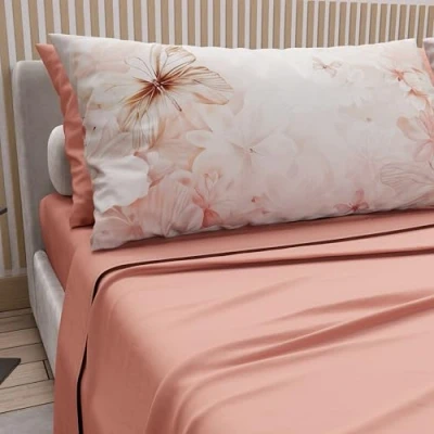 PETTI Artigiani Italiani Double Bed Sheets Cotton with Pillowcases in Digital Print, Sheet, Floral Pattern 11 Salmon, 100% Made Italy