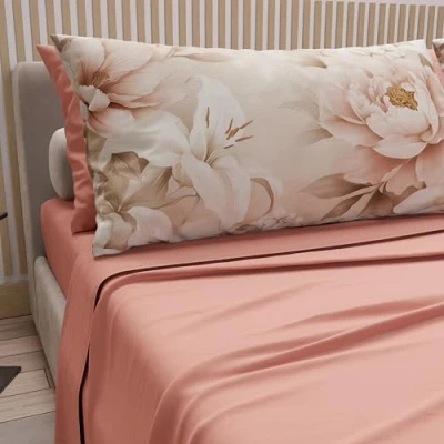 PETTI Artigiani Italiani Double Bed Sheets Cotton with Pillowcases in Digital Print, Sheet, Floral Pattern 26 Salmon, 100% Made Italy