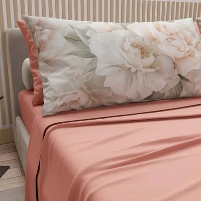 PETTI Artigiani Italiani Double Bed Sheets Cotton with Pillowcases in Digital Print, Sheet, Floral Pattern 40 Salmon, 100% Made Italy