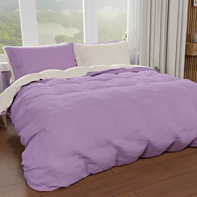 PETTI Artigiani Italiani Double Duvet Cover, Cover and Pillowcases in Microfiber, Bicolor Lilac/Cream, 100% Made Italy