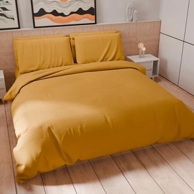 PETTI Artigiani Italiani Double Duvet Cover, Cover and Pillowcases in Microfiber, Solid Colour Yellow Ochre, 100% Made Italy