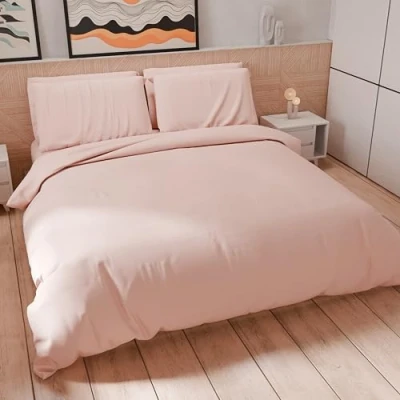 PETTI Artigiani Italiani Double Duvet Cover, Cover and Pillowcases in Microfibre, Plain Light Powder, 100% Made Italy