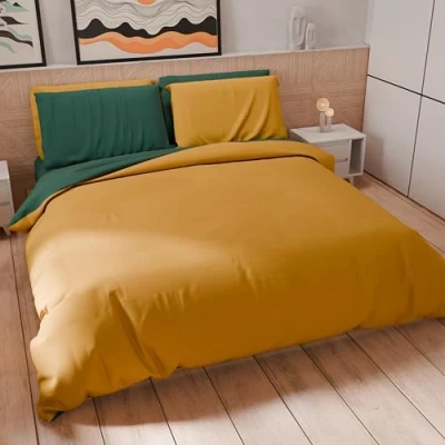 PETTI Artigiani Italiani Double Duvet Cover, Microfibre Cover and Pillowcases, Bicolor Emerald Green/Ochre Yellow, 100% Made in Italy