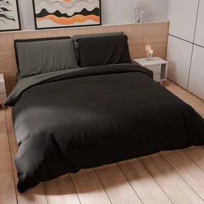 ️ A Refuge of Softness and Style: Every night becomes an ode to comfort with our double duvet cover, a perfect combination of sophistication and sweetness to the touch. The set includes a duvet cover (220 x 230 cm) and two pillowcases (50 x 75 cm), enveloping your bed in timeless elegance. The purity of a caress - 100% hypoallergenic microfibre: Created with the utmost attention to quality, our duvet cover is made from hypoallergenic microfibre (100 g/m²), a soft, velvety fibre that caresses the skin like a light breeze, ensuring a cool and safe rest night after night. Two Faces, One Harmony – Solid or Two-Tone – Express your style by choosing between the sobriety of solid colors or the versatility of reversible bicolors, perfect for transforming the atmosphere of your room with a simple gesture, like the flow of seasons. ❄️☀️ Winter warmth, cool in summer - a companion for every season: Thanks to its lightweight and breathable composition, our duvet cover ensures a perfect balance between protection and well-being, keeping you enveloped in warmth on cold nights and caressing you with freshness in the warmer months. Thoughtless beauty: Easy to wash, always perfect: made for those who love practicality without sacrificing elegance, the duvet cover is machine washable at 30°C, dries quickly and does not require ironing, keeping its softness intact over time.