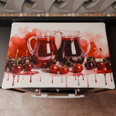 PETTI Artigiani Italiani Kitchen Textile Accessories, Cooker Cover 46 x 70 cm in Microfibre, Elegant for Gas and Induction, Digital Print Cherries, 100% Made Italy