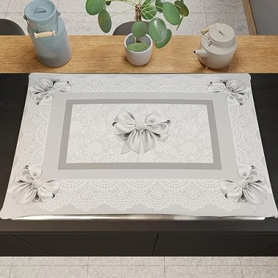 PETTI Artigiani Italiani Kitchen Textile Accessories, Cooker Cover 46 x 70 cm in Microfibre, Elegant for Gas and Induction, Digital Print Grey Bow, 100% Made Italy