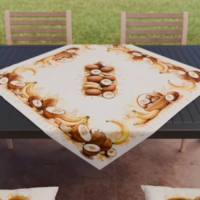 PETTI Artigiani Italiani Kitchen Textile Accessories, Modern Microfibre Centerpiece, 90 x cm, Elegant Table Cover in Digital Print Coconut and Banana, 100% Made Italy