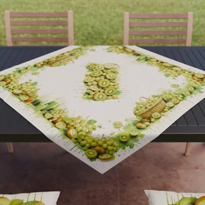 PETTI Artigiani Italiani Kitchen Textile Accessories, Modern Microfibre Centerpiece, 90 x cm, Elegant Table Cover in Digital Print Grapes and Kiwi, 100% Made Italy