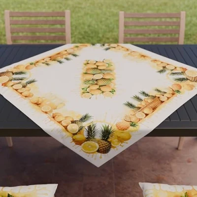 PETTI Artigiani Italiani Kitchen Textile Accessories, Modern Microfibre Centerpiece, 90 x cm, Elegant Table Cover in Digital Print Lemons and Pineapples, 100% Made Italy