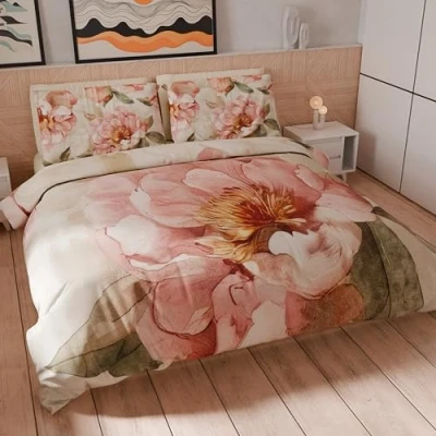PETTI Artigiani Italiani Maxi Double Duvet Cover Set 260 x 220 cm (2 Pillowcases 75 50 Included), Microfibre with Digital Floral Print 25 20 Made in Italy