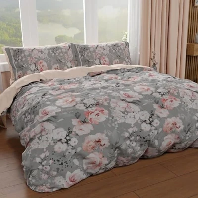 PETTI Artigiani Italiani Maxi Double Duvet Cover Set 260 x 240 cm (2 Pillowcases 63 Included), Microfibre with Digital Floral Print 17 02 Made in Italy