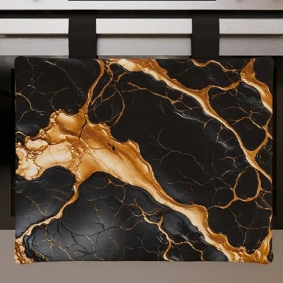 PETTI Artigiani Italiani Modern Black and Gold Marble Effect Kitchen Oven Cover, 40 x 50 cm, 100% Made in Italy