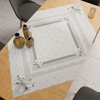 PETTI Artigiani Italiani Modern Digital Print Kitchen Tablecloth with Grey Bow 100% Made in Italy