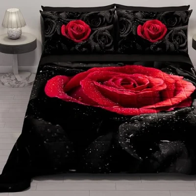 PETTI Artigiani Italiani One and a Half Bedspread, Quilt, Spring Double Face Solid Color Digital Print, Black Roses, 100% Made in Italy