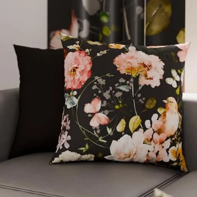 PETTI Artigiani Italiani Pair of Pillow Cases 45 x cm in Microfibre, Cushions for Bedroom Furniture, Sofa, Living Room, Set 2 Cushion Covers, Black Floral Pillowcase, 100% Made Italy