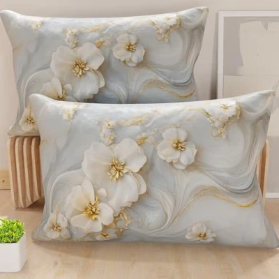 PETTI Artigiani Italiani Pair of Pillow Cases 50 x 70 cm in Microfibre, Cushions for Bedroom Furniture, Sofa, Living Room, Set 2 Cushion Covers, Floral Pillowcase 06 1, 100% Made Italy