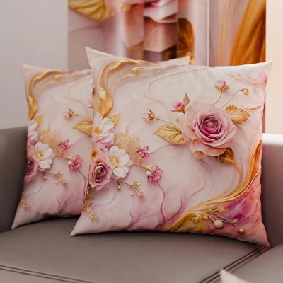 PETTI Artigiani Italiani Pair of Pillow Cases 65 x cm in Microfibre, Cushions for Bedroom Furniture, Sofa, Living Room, Set 2 Cushion Covers, Floral Pillowcase 06 6, 100% Made Italy