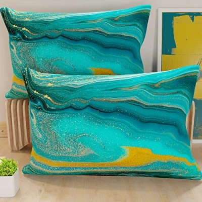 PETTI Artigiani Italiani Pair of Pillow Cases 80 x 40 cm in Microfibre, Cushions for Bedroom Furniture, Sofa, Living Room, Set 2 Cushion Covers, Blue Marble Pillowcase, 100% Made Italy
