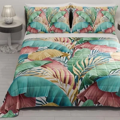PETTI Artigiani Italiani Queen Size Bedspread 220 x 260 cm 100 g/m² Reversible Lightweight Quilt Tropical Multicoloured 100% Made in Italy