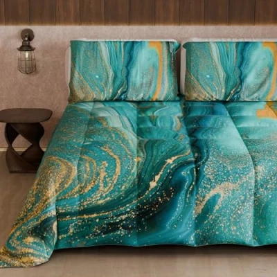 PETTI Artigiani Italiani Quilt, Winter Duvet, Single Double Face Quilt Solid Color and Digital Marble Green Print, 100% Anti Allergic Microfiber, Made in Italy