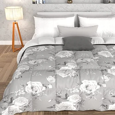 PETTI Artigiani Italiani Quilt, Winter Duvet, Single Double Sided Solid Colour and Digital Floral Print 21 Grey, 100% Hypoallergenic Microfibre, Made in Italy