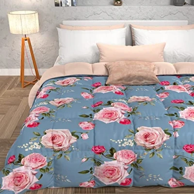 PETTI Artigiani Italiani Quilt, Winter Duvet, Single Quilt Double Face Solid Color and Digital Print Floral 20 Light Blue, 100% Hypoallergenic Microfiber, Made in Italy