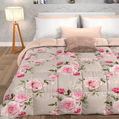 PETTI Artigiani Italiani Quilt, Winter Duvet, Single Quilt Double Face Solid Color and Digital Print Floral 20 Taupe, 100% Hypoallergenic Microfiber, Made in Italy