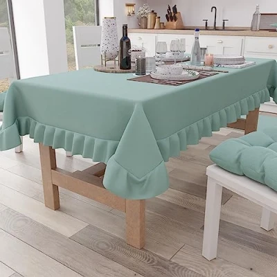 PETTI Artigiani Italiani Ruffle Tablecloth Rectangle Kitchen with Valance Plain Cotton X12 Seater (140x240cm) Aqua