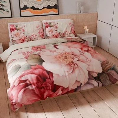 PETTI Artigiani Italiani Single Duvet Cover Set 135 x 200 cm (1 Pillowcase 75 50 Included), Microfibre with Digital Floral Print 04 152 Made in Italy