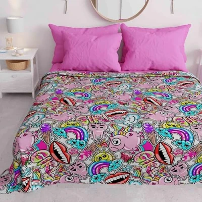 Spring opens the door to imagination and new colours: it's time to abandon the warm and thick quilts and let yourself be pampered by the softness of the Spring Summer Bedspread available in many colours to brighten up and renew the room, with a new colour or a different pattern, as often as you want. What will I get at home? You will receive a double summer bedspread, size 265 x 260 cm in the murals pattern The product is made of 100% hypoallergenic microfibre, a fibre that in addition to being hypoallergenic is also anti-mite, breathable and gives our prints a unique shine Our summer bedspread can be easily washed in a machine at 30 °C or by hand with a wet cloth and can be left to dry in the sun quickly. We recommend not bleaching the product All our products are 100% made in Italy, made according to the rules of master craftsmen
