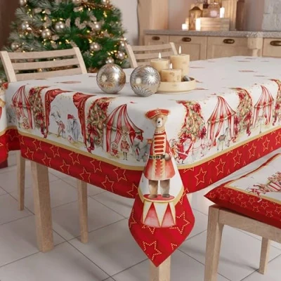 PETTI Artigiani Italiani Stain Resistant Christmas Tablecloth Square Table Cover for Kitchen Circus Design X4 Places (140 x 140 cm) 100% Made in Italy