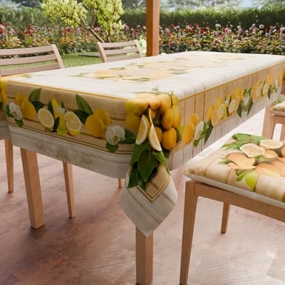 PETTI Artigiani Italiani Stain Resistant Rectangular Tablecloth Kitchen Table Cover Lemon Design (140 x 300 cm) 100% Made in Italy
