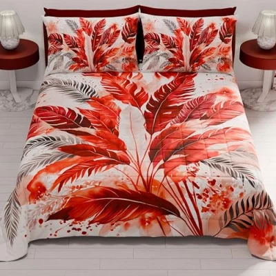 PETTI Artigiani Italiani Summer Single Bedspread 170 x 260 cm 100 g/m² Double Face, Spring Bed Quilt, Lightweight Red Palm, 100% Made in Italy