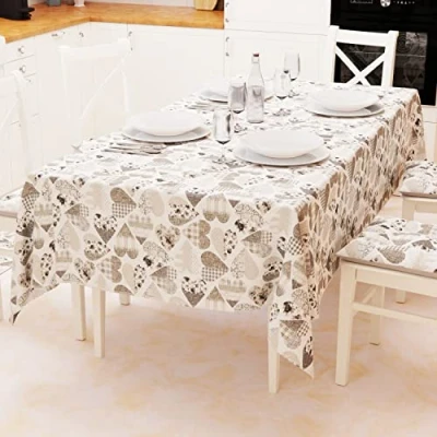 Petti Artigiani Italiani tablecloth, tablecloth, tablecloth for kitchen made of cotton, 100% made in Italy 👉 The purpose of the tablecloth not only protects the surface of your table from scratches and dirt, but also gives your kitchen or dining room a touch of vibrancy and happiness with our digital prints in high resolution of 4K, unique and original or classic plain colour 👉 Package includes: 1 x 12 seater rectangular tablecloth (140 x 240 cm) design: grey hearts Material: 100% cotton - manufacturing: 100% made in Italy Hand wash or delicate wash in the washing machine recommended