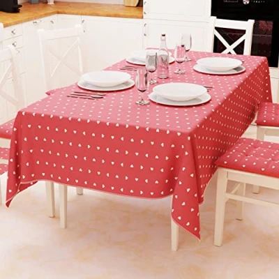 PETTI Artigiani Italiani Table cloth, tablecloth, tablecloth for the kitchen made of cotton, red hearts design (140 x 450 cm) 100% in Italy