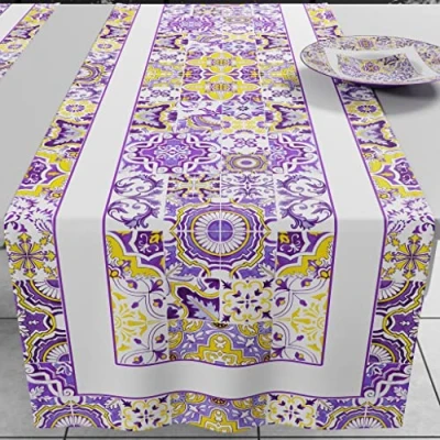 PETTI Artigiani Italiani Table Runner, Kitchen Cloth Runner in Vietri Digital Print, Purple, 100% Made Italy