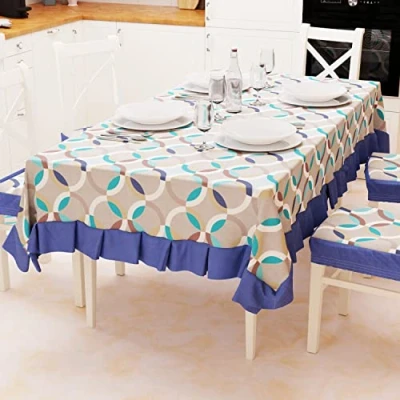 PETTI Artigiani Italiani Tablecloth, Plastic Table Cover with Ruffles, Cover, Waterproof Outdoor in Cotton Circle Design Blue X12 Seats (140 x 240 cm) 100% Made Italy