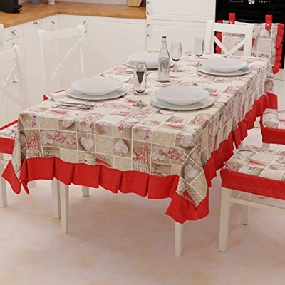 PETTI Artigiani Italiani Tablecloth, Plastic Table Cover with Ruffles, Cover, Waterproof Outdoor in Cotton Lidia Red Design X12 Seats (140 x 240 cm) 100% Made Italy
