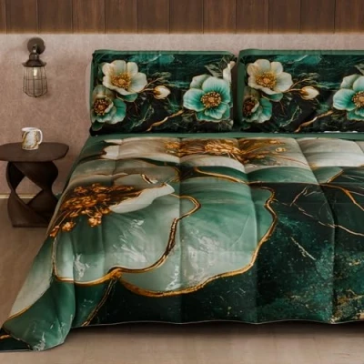 PETTI Artigiani Italiani Winter Quilt, Duvet, Double Sided Single Quilt Solid Colour and Digital Floral Print 06 19, 100% Microfibre, Made in Italy