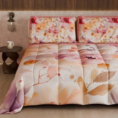 PETTI Artigiani Italiani Winter Quilt, Duvet, Double Sided Single Quilt Solid Colour and Digital Floral Print 25 2, 100% Microfibre, Made in Italy